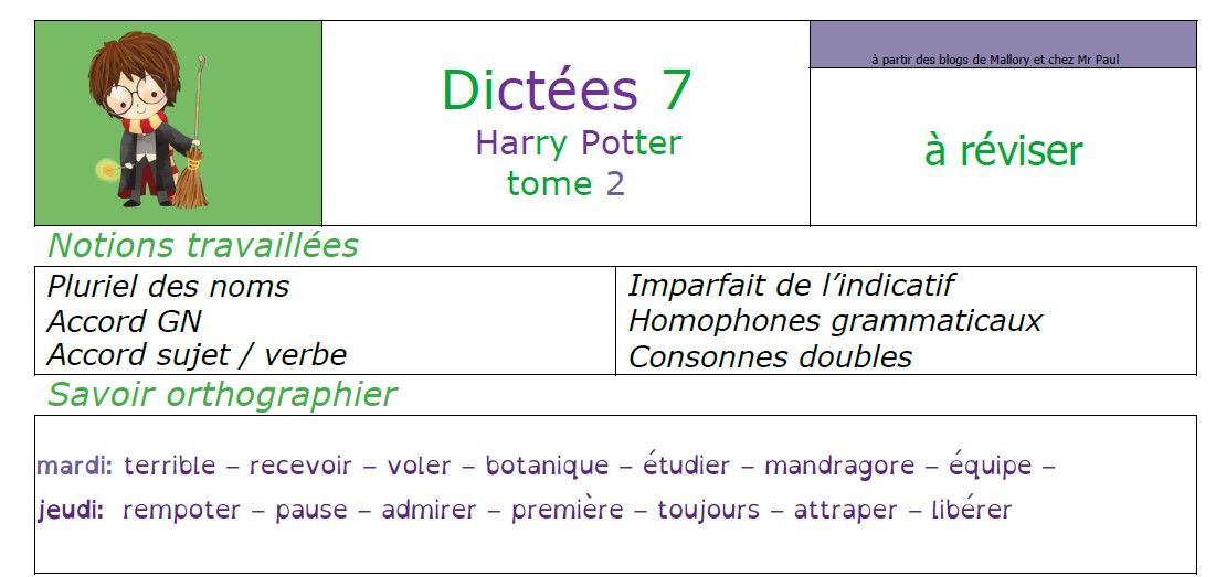 dictées période 2 Harry Potter Tome 2